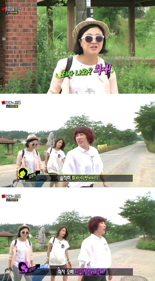 26일 방송된 KBS 2TV 예능프로그램 '인간의 조건'에서는 김준호 김준현 정태호 개코 김기리 김숙 김영희 김지민 천이슬 등이 새로운 미션을 수행하는 모습이 그려졌다.