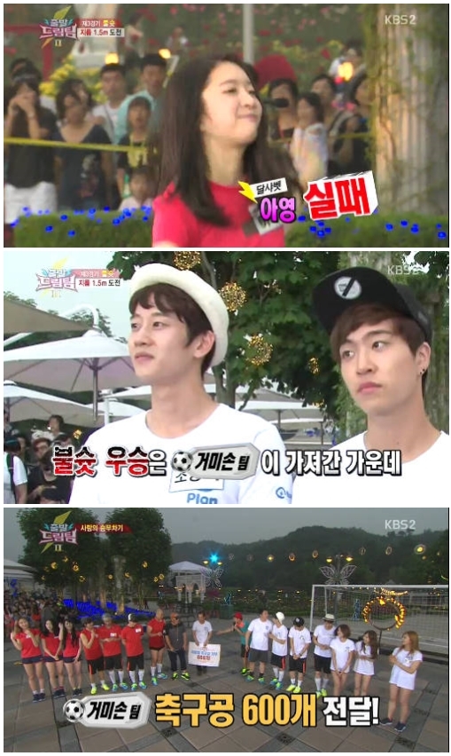 27일 오전 방송된 KBS 2TV 예능프로그램 '출발 드림팀 시즌2'는 '사랑의 승부차기' 편으로 꾸며졌다.