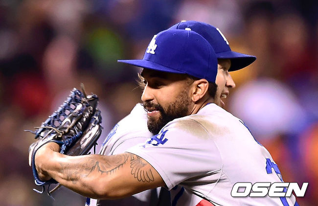 완봉승을 거둔 다저스 커쇼가 맷 켐프와 기뻐하고 있다./youngrae@osen.co.kr