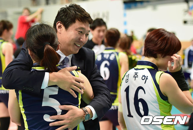 경기종료후 승리한 현대건설 양철호 감독이 조예진 선수와 포옹하고 있다./greenfield@osen.co.kr