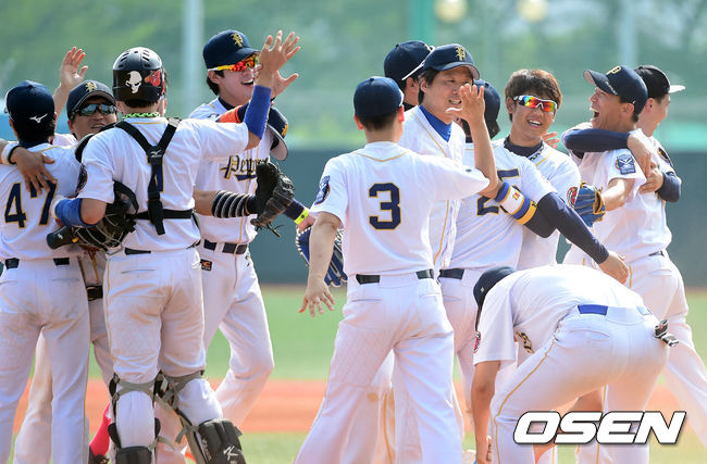 이날 경기서 SP 페퍼스가 챔피언스를 5대4로 꺾고 우승을 차지했다. 경기후 SP 페퍼스 선수들이 우승을 기뻐하고 있다.