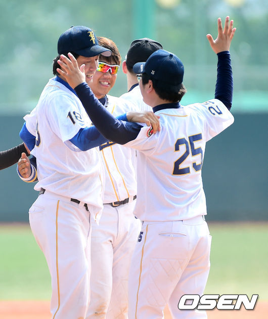 이날 경기서 SP 페퍼스가 챔피언스를 5대4로 꺾고 우승을 차지했다. 경기후 SP 페퍼스 선수들이 우승을 기뻐하고 있다.
