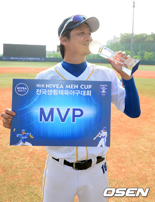 우승을 차지한 SP 페퍼스 서성환이 MVP 트로피에 키스를 하고 있다. / jpnews@osen.co.kr