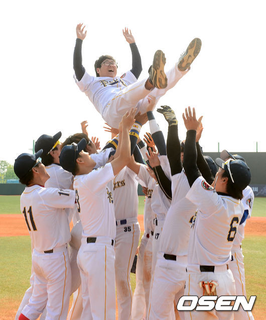 우승을 차지한 SP 페퍼스 박광훈 감독이 헹가래를 받으며 기뻐하고 있다. / jpnews@osen.co.kr