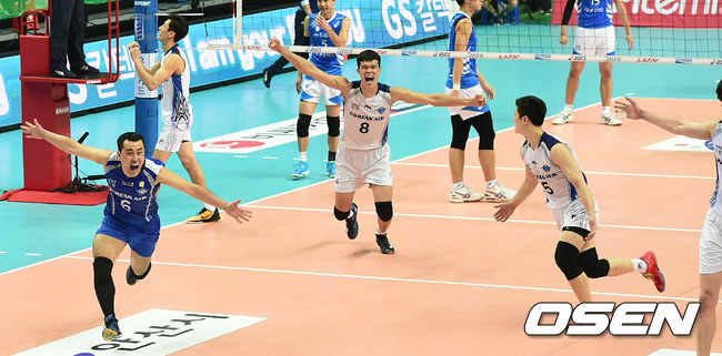 그러나 점수를 주고 받으며 시소게임을 이어가던 두 팀의 승부는 9-9에서 갈렸다. 최홍석의 퀵오픈을 신영수가 블로킹으로 잡아낸 데 이어 오픈까지 연달아 성공시키며 11-9를 만든 대한항공은 이후 상대 범실과 강민웅의 블로킹을 엮어 점수를 13-10으로 벌려 승기를 잡았다.