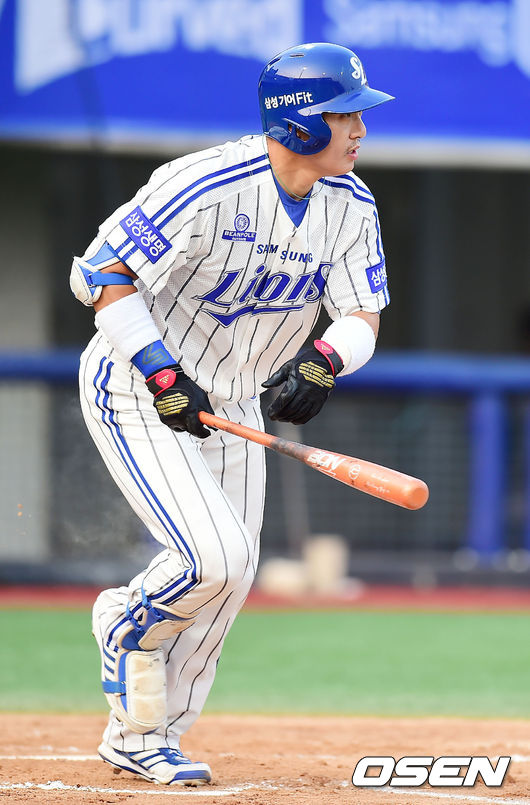 27일 오후 포항 야구장에서 열린 '2014 한국야쿠르트 세븐 프로야구' 삼성 라이온즈와 NC 다이노스의 경기, 2회말 삼성 선두타자 이승엽이 12년 연속 세자리 안타에 성공하고 있다.(프로통산 3번째)