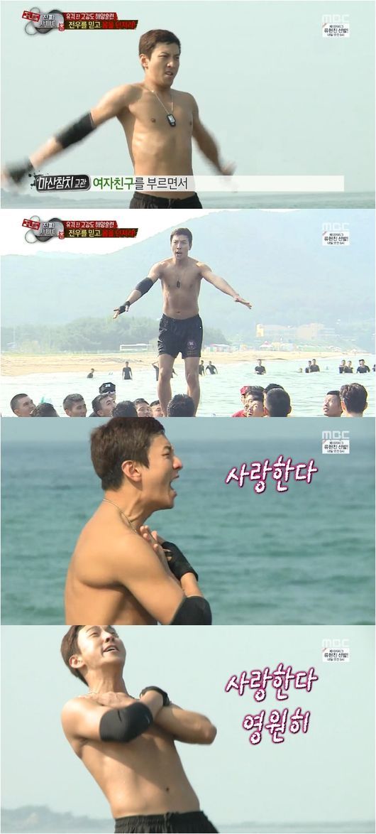 박건형은 27일 방송된 MBC 예능프로그램 ‘일밤-진짜 사나이’에서 바다에 입수를 해야 하는 상황에서 생각나는 사람을 묻자 “여자친구가 생각난다”고 소리 질렀다.