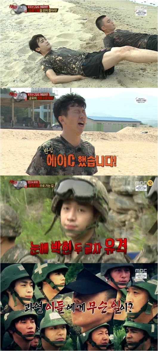 27일 방송된 MBC 예능프로그램 ‘일밤-진짜 사나이’는 유격 훈련을 앞두고 체력 훈련을 받는 멤버들의 모습이 그려졌다. 멤버들은 이날 아침부터 저녁까지 육지와 바다를 가리지 않고 험난한 훈련을 받았다.