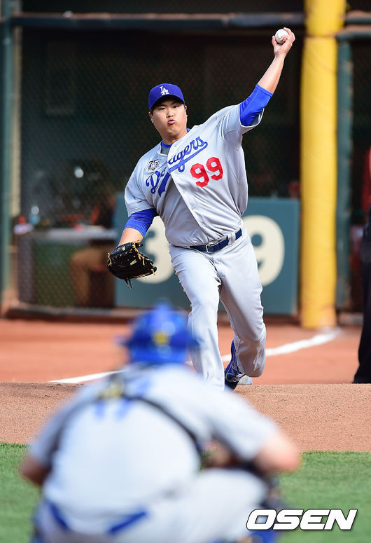 첫 타자 그레거 블랑코를 1루 땅볼로 처리한 류현진은 순조롭게 출발했다. 천적인 2번 헌터 펜스를 상대로는 연이어 볼 2개를 던졌으나 3구째에 투수 땅보을 유도해 아웃카운트를 추가했다. 이어 3번 버스터 포지까지 2루 땅볼 유도한 류현진은 삼자범퇴로 1회말을 깔끔히 끝냈다.