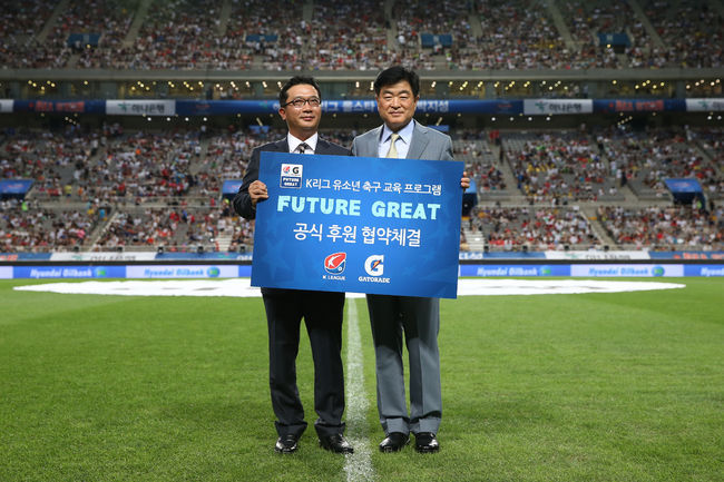 한국프로축구연맹(총재 권오갑, 이하 ‘연맹’)이 한국펩시콜라(주)(대표이사 임헌영)의 세계 스포츠음료 1위 브랜드 게토레이와 유소년 축구 교육 프로그램 'Future GREAT' 공식 업무 후원 협약을 맺었다.