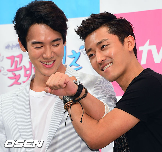 28일 오후 서울 강남구 임피리얼 팰리스 호텔에서 진행된 tvN '꽃보다 청춘' 제작발표회에서 유연석과 손호준이 포즈를 취하고 있다
