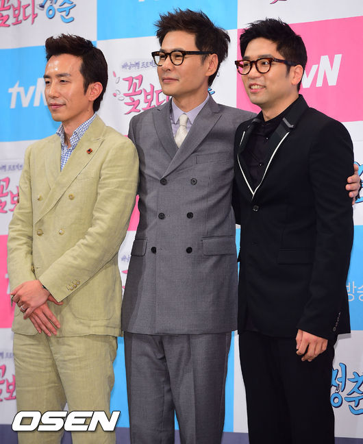28일 오후 서울 강남구 임피리얼 팰리스 호텔에서 진행된 tvN '꽃보다 청춘' 제작발표회에서 유희열과 윤상, 이적이 포즈를 취하고 있다
