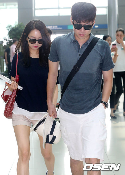 박지성-김민지 부부가 28일 오전 인천공항을 통해 신혼여행지로 출국하고 있다.