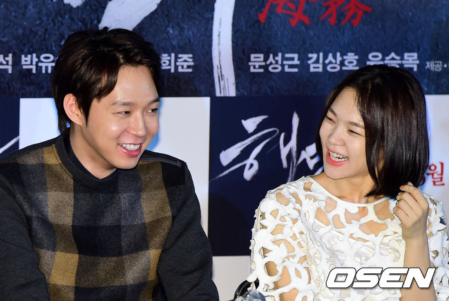 박유천, 한예리가 간담회 도중 미소짓고 있다.