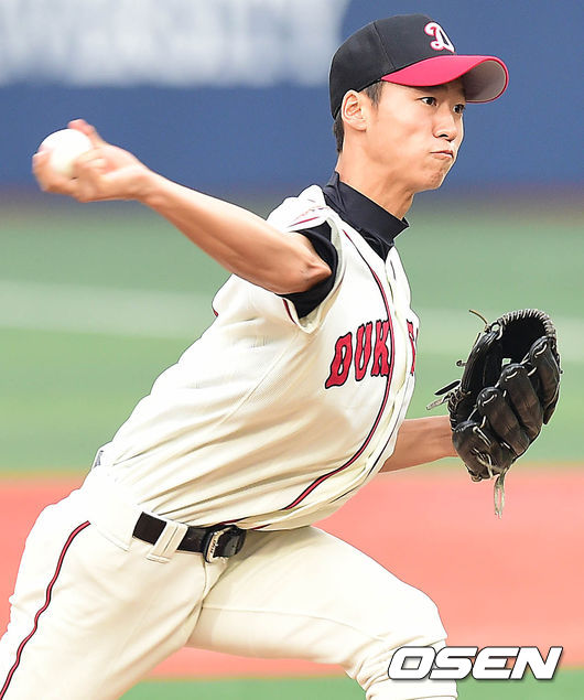 덕수고 선발 엄상백이 힘차게 공을 뿌리고 있다.