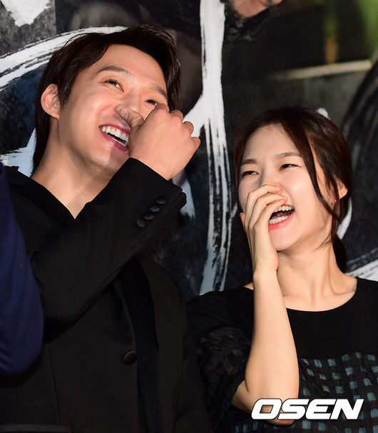 김윤석이 무대에 올라 본인을 박유천이라 소개하자 박유천, 한예리가 웃음을 터뜨리고 있다.