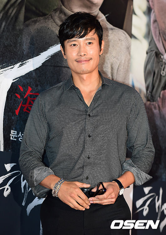 이병헌이 시사회에 참석해 포토타임을 하고 있다.