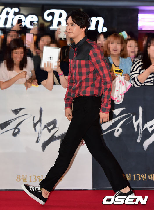 주원이 시사회에 참석해 레드카펫을 밟고 있다.