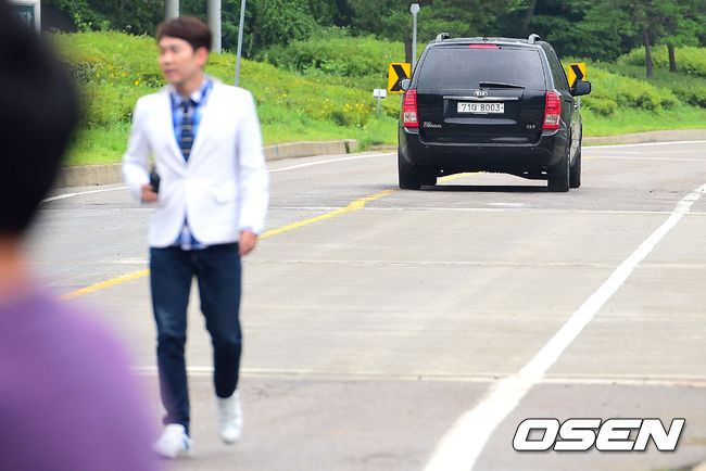 이특을 태운 차량이 황급히 부대를 떠나고 있다. / soul1014@osen.co.kr