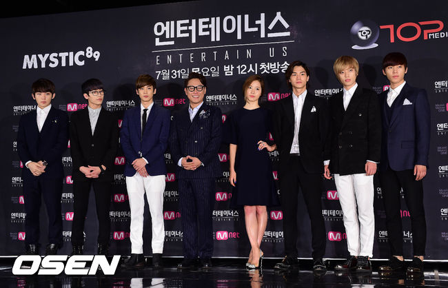 29일 오전 서울 상암동 CJ E&M 센터에서 열린 Mnet '엔터테이너스' 제작발표회에서 틴탑, 윤종신, 김예림이 포토타임을 갖고 있다.