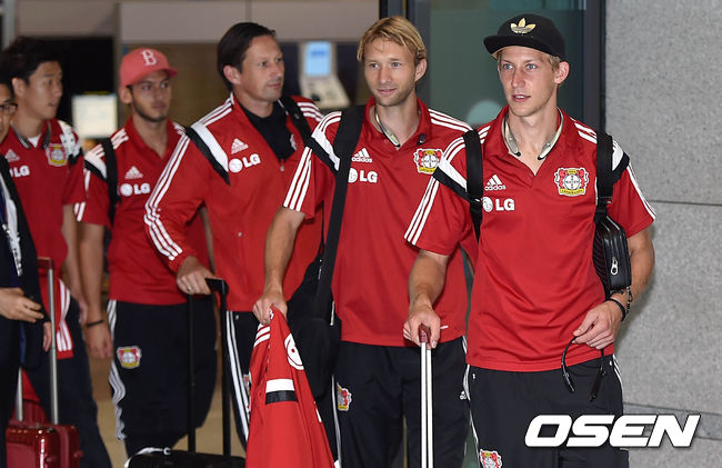 로저 슈미트 감독이 이끄는 바이엘 04 레버쿠젠 선수단이 'LG전자 초청 바이엘 04 레버쿠젠 한국투어 2014'(이하 레버쿠젠 방한경기) 참가를 위해 29일 오후 인천국제공항을 통해 입국했다.