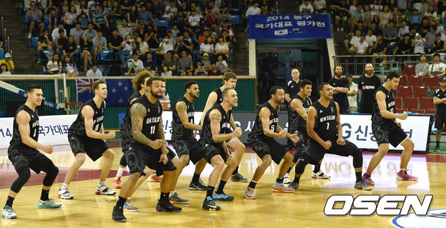 29일 오후 서울 잠실 학생체육관에서 열린 남자농구대표팀 평가전 한국과 뉴질랜드의 경기, 경기시작전 뉴질랜드 선수들이 전통춤을 선보이고 있다.