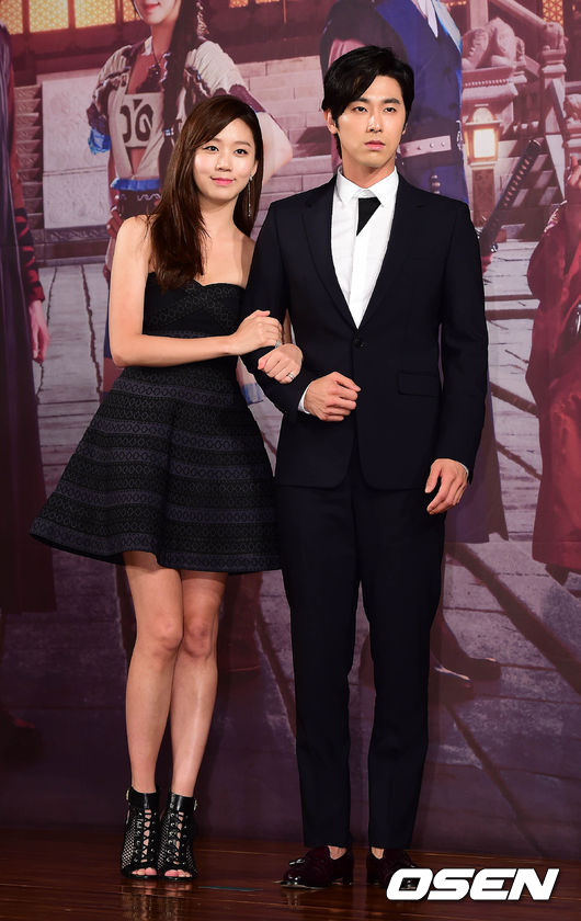 29일 오후 서울 여의도동 63빌딩 별관에서 열린 MBC 새 월화드라마 '야경꾼일지' 제작발표회에서 고성희와 정윤호가 포토타임을 갖고 있다.