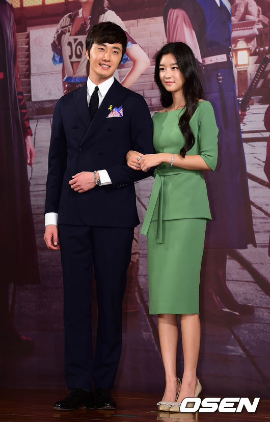 29일 오후 서울 여의도동 63빌딩 별관에서 열린 MBC 새 월화드라마 '야경꾼일지' 제작발표회에서 정일우와 서예지가 포토타임을 갖고 있다.