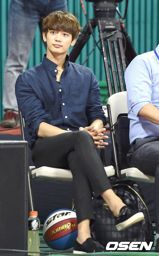 29일 오후 서울 잠실 학생체육관에서 열린 남자농구대표팀 평가전 한국과 뉴질랜드의 경기, 샤이니 민호가 경기를 관람하고 있다.