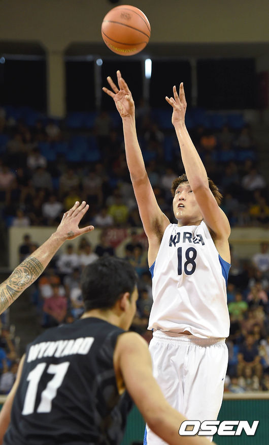 29일 오후 서울 잠실 학생체육관에서 열린 남자농구대표팀 평가전 한국과 뉴질랜드의 경기, 2쿼터 대한민국 이종현이 슛을 시도하고 있다.