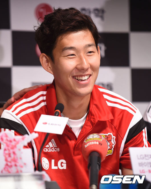솒흥민 선수가 독일 취재진의 독일어 인사로 부탁하자 미소를 지어보이고 있다./ ajyoung@osen.co.kr