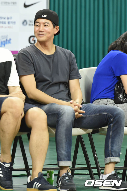 29일 오후 서울 잠실 학생체육관에서 열린 남자농구대표팀 평가전 한국과 뉴질랜드의 경기, 배우 이상윤이 경기를 관람하고 있다.