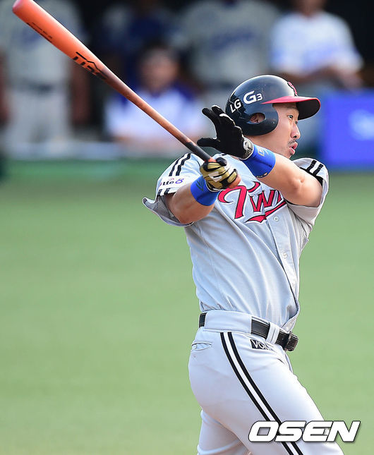 2회초 LG 공격 1사 3루 상황 이병규가 선제 1타점 우익선상 2루타를 날리고 있다.