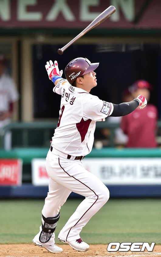 넥센 히어로즈 내야수 김민성이 투런포를 쏘아 올렸다.