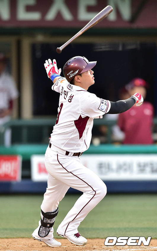 2회말 1사 1루에서 넥센 김민성이 중월 투런 홈런을 치고 있다.