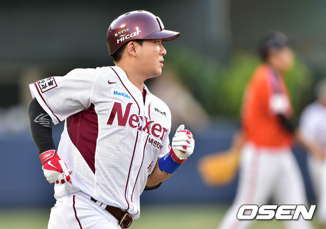 2회말 1사 1루에서 넥센 김민성이 중월 투런 홈런을 치고 그라운드를 돌고 있다.