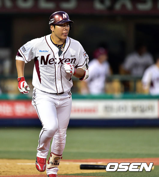 3회말 2사에서 넥센 강정호가 좌월 솔로포를 치고 그라운드를 달리고 있다.