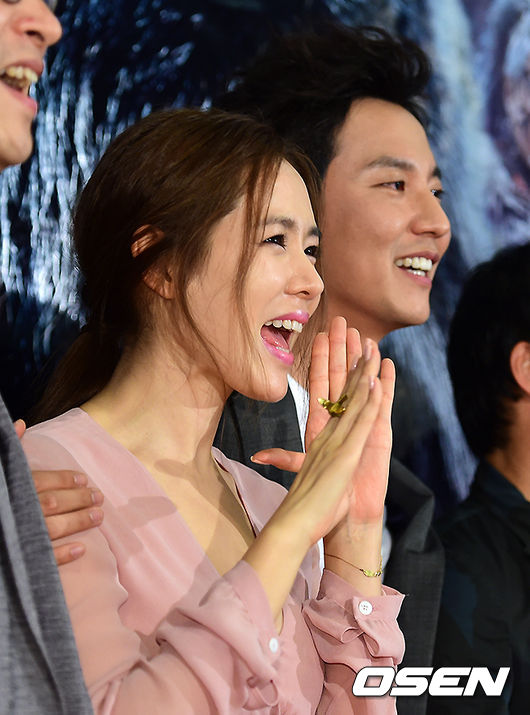손예진, 김남길이 무대에 올라 팬들에 인사를 하고 있다.