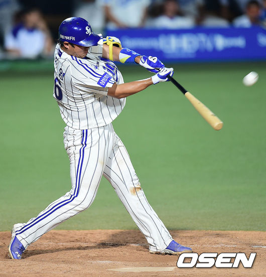 4회말 삼성 공격 1사 주자없는 상황 이지영이 동점 좌월 솔로포를 날리고 있다.