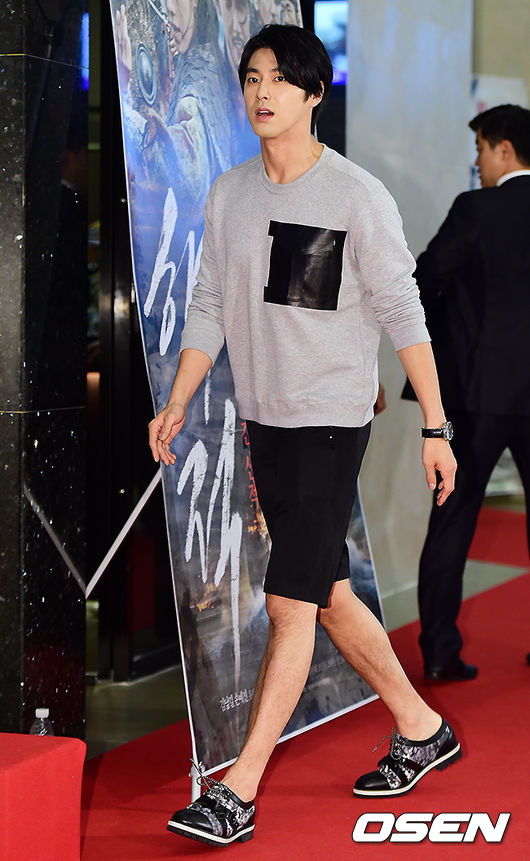 이날 시사회에 참석한 가수 유노윤호가 포즈를 취하고 있다.