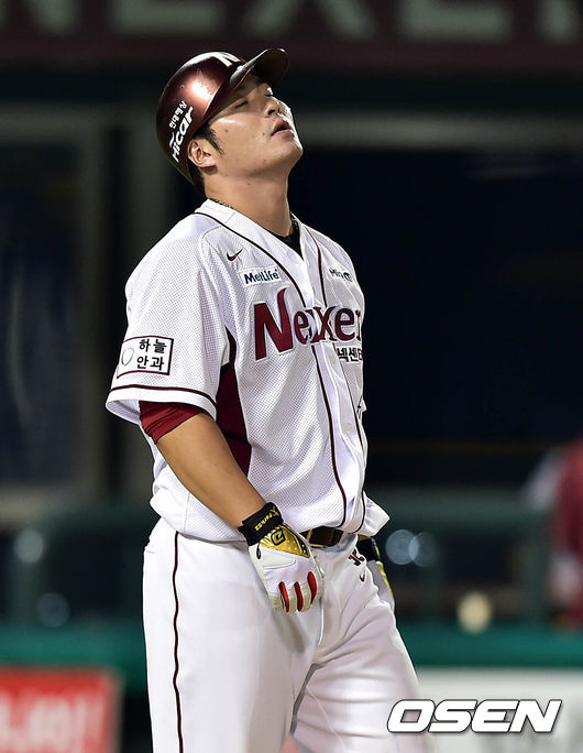 3회말 2사 2루에서 넥센 박병호가 삼진으로 물러나며 아쉬워하고 있다.