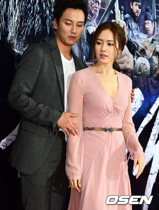 손예진, 김남길이 무대에 올라 팬들에 인사하기에 앞서 자리를 바꾸고 있다.