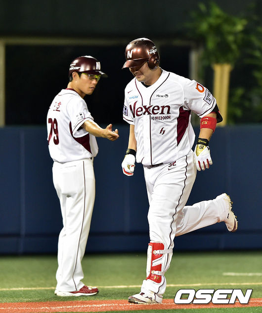 7회말 무사에서 넥센 박병호가 좌월 솔로 홈런을 치고 그라운드를 돌고 있다.