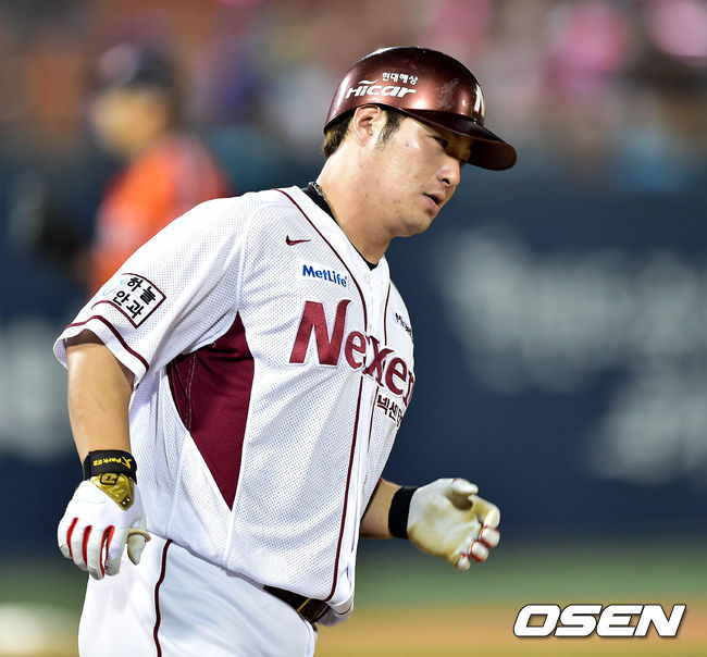 7회말 무사에서 넥센 박병호가 좌월 솔로 홈런을 치고 그라운드를 돌고 있다.