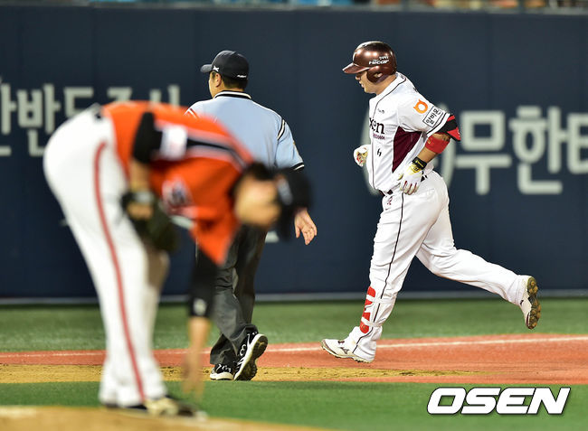 7회말 무사에서 넥센 박병호가 좌월 솔로 홈런을 치고 그라운드를 돌고 있다.