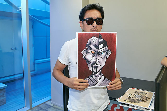 지난 주말 무대인사 후 윤종빈 감독과 배우들, 그리고 하정우는 매의 눈으로 심사를 진행, 핏빛 배경이 예술적으로 표현된 반은 도치, 반은 조윤의 얼굴을 하고 있는 그림이 장원에 선정되는 영광을 안았다.