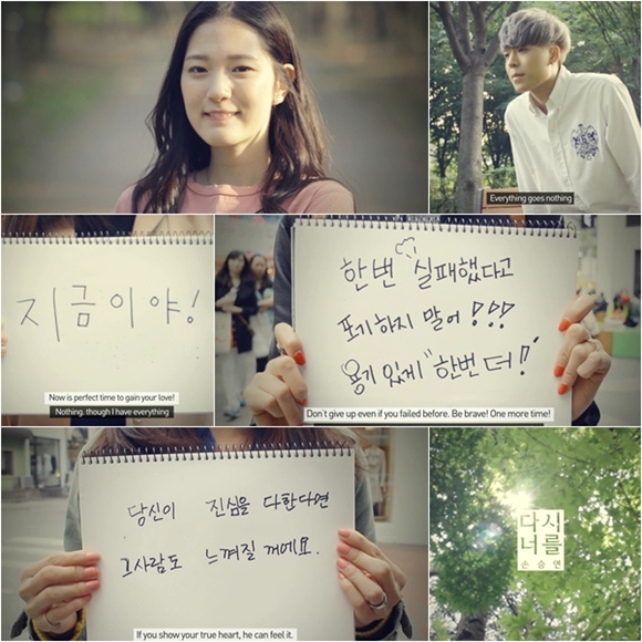 뮤직비디오는 서울 시민들의 참여한 독특한 방식으로 진행됐다. 한 커플의 재회를 그리면서, 시민들이 직접 적은 '고백을 망설이는 친구에게 하고 싶은 말'을 답변이 나열됐다. 마치 영화 '러브 액츄얼리'의 유명한 스케치북 고백 장면처럼 시민들의 답변이 이어지면서 공감을 높였다.