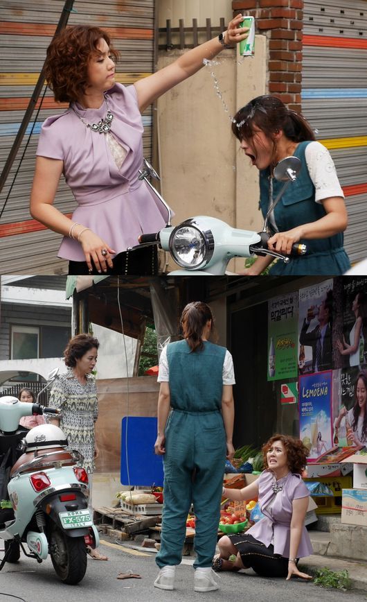 사이다 세례에 오지은은 얼굴과 옷, 타고 있던 스쿠터까지 흠뻑 사이다에 젖고 말았다. 이어 이덕희는 머리채까지 잡았다.