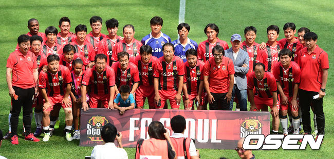 30일 오후 서울월드컵경기장에서 열린 FC 서울 올드스타와 KBS 예능 프로그램 '우리동네 예체능'팀의 경기, 경기에 앞서 FC서울 올드스타들이 한 자리에 모여 포토타임을 하고 있다.