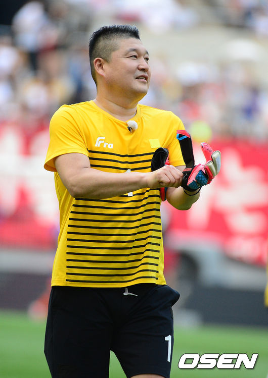 30일 오후 서울월드컵경기장에서 열린 FC 서울 올드스타와 KBS 예능 프로그램 '우리동네 예체능'팀의 경기, 경기에 앞서 예체능 강호동이 몸을 풀고 있다.